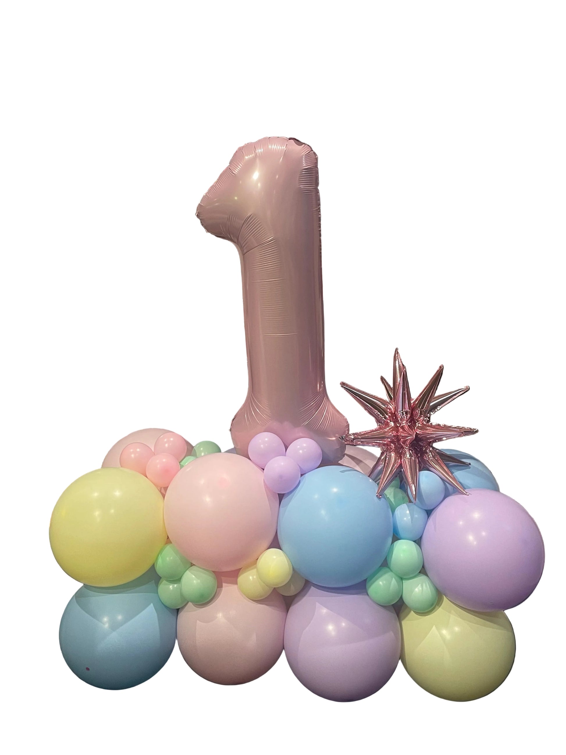 Approximately 1m of sitting air-filled balloon garland and matching foil decor with an 86cm foil number.